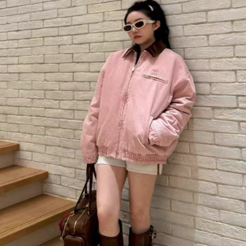 黒キルトコットンジャケット女性用トライアングルロゴターンダウンカラー厚手防水ヴィンテージ長袖カジュアル半旗秋