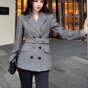 Nanyouオートクチュール2025秋冬ダブルブレストロングスリムウールブレンドブレザー女性用